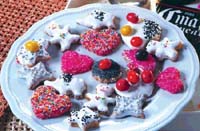 | ПЕЧЕНЬЕ НЕЖНОСТЬ Продукты: Для теста: 250 г маргарина, 400 г муки, 40 мл светлого пива. Для глазури: 100 г сахарной пудры, 3 яичных белка, 60 мл светлого пива. Для украшения: шоколадная стружка, кокосовая стружка, мармелад. Инструкции: Для приготовления теста натереть маргарин на тёрке или измельчить, добавить муку, пиво и замесить тесто. Тесто охладить в течение часа. Затем раскатать его толщиной 1-1,5 см и вырезать фигурные формочки. Выпекать при температуре 180 С до готовности. Для приготовления глазури соединить сахар с пивом и варить густой сироп. Одновременно взбить 3 белка до получения белого цвета, тонкой струйкой влить сироп в белки, не переставая взбивать. Выпеченные фигурные формочки покрыть полученной глазурью. Печенье оформить шоколадной стружкой, мармеладом, кокосовой стружкой.